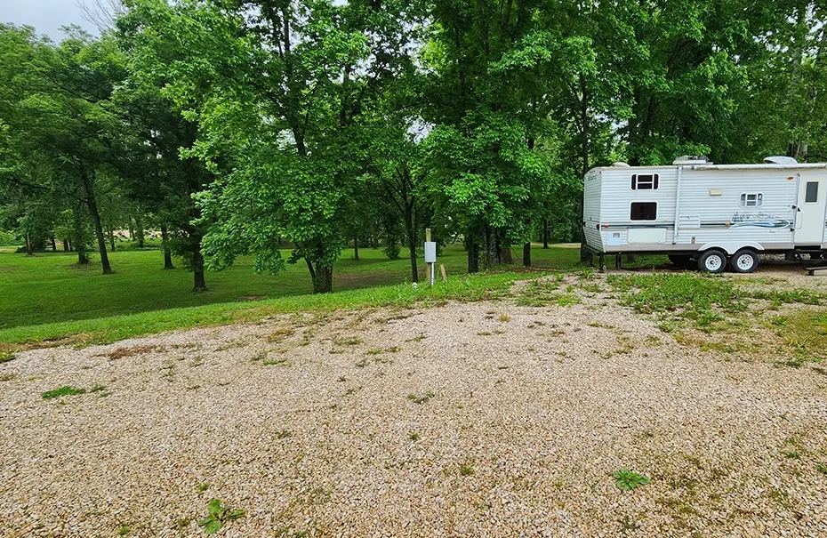 Includes Electric (30/50 Amp), water and sewer hookups. 28Ft and Smaller campers Sites include up to 6 people per site. $15 per person over 6. Nestled along the scenic banks of the Jacks Fork River… RV Campsite 2